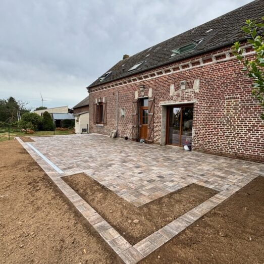 Création de terrasses en pavés et points d'eau L'expertise Amenagext, paysagiste Amiens et Arras